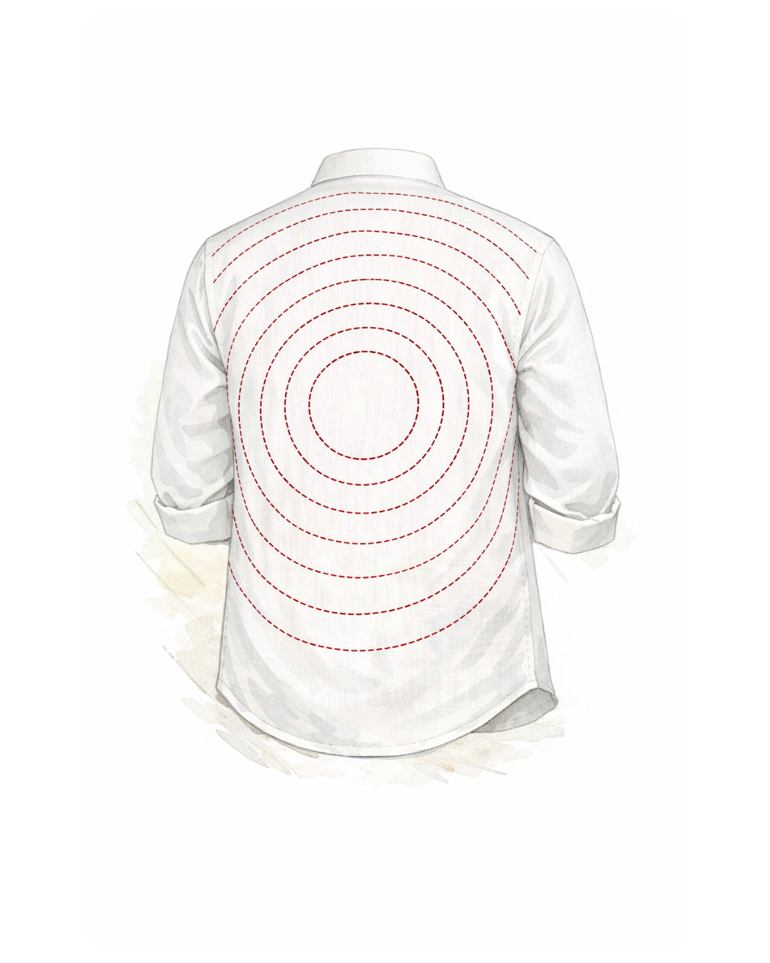 once. Inspired by the innocence of a child who gives without question and feels without fear. At the back, red geometric circles are hand-embroidered in a kantha eternal loop of devotion and delusion. The center remains hollow. Because in the heart of all love lies a void we try to fill.
